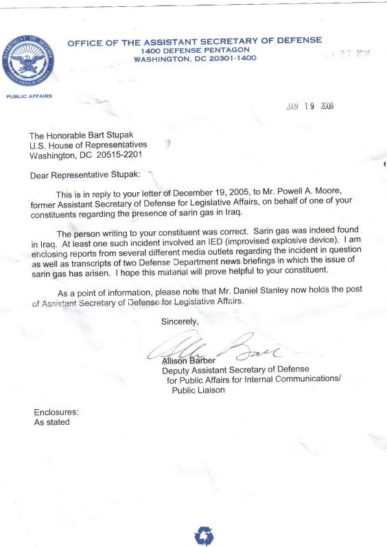 For over a year I ripped on My liberal COngressman(who I happen to know all too well) and he kept saying "There are No WMD's in Iraq". I kept saying "well Bart-we ran into 2 of them on our Convoys and this jack ass kept telling Me(who has actually been to Iraq) There are No WMD's in Iraq. Finally he got off of his fat ass and contacted DOD and Just Imagine-DOD confirmed what I ran into :P Read Sadas Book(Sadas was Saddam's Air Force General) and he'll tell you all about WMD's in Iraq-What happened to them and where MOST of them went. God help the U.S when Liberals follow the Party Line when it comes to WMD's or anything else Militarily connected. Blood is going to be on their hands AGAIN!!!