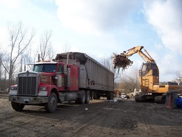 As if enough hasn't gone wrong I was running a rental excavator today supplying scrap pallets to a tub grinder for mulch and I grappled some pallets and there was a long piece of wood that came up and blew out the windshield and bent the window frame. :evil: They say things happen in 3's, I'm not looking forward to the 3rd thing. I hope that if I want to go back OTR someday this won't make it hard for me to get on with a decent company. I'll have to wait and see when that time comes. :? Also, thank you to everybody for your kind words and concern