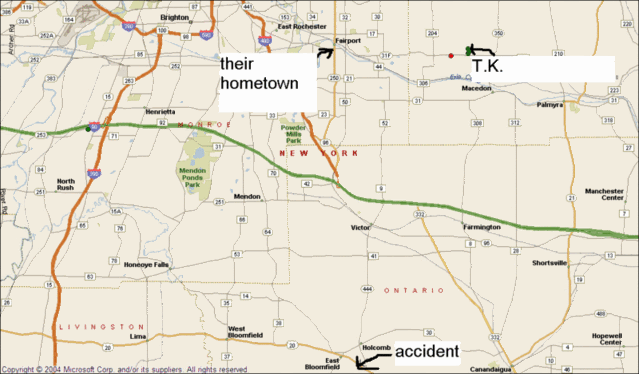 They're not blaming the driver as far as I know. They're just bitching about trucks in general, trying to find a reason. Here is a map. Rochester is at the top towards the left. From Fairport to the accident location is 15 air miles.
