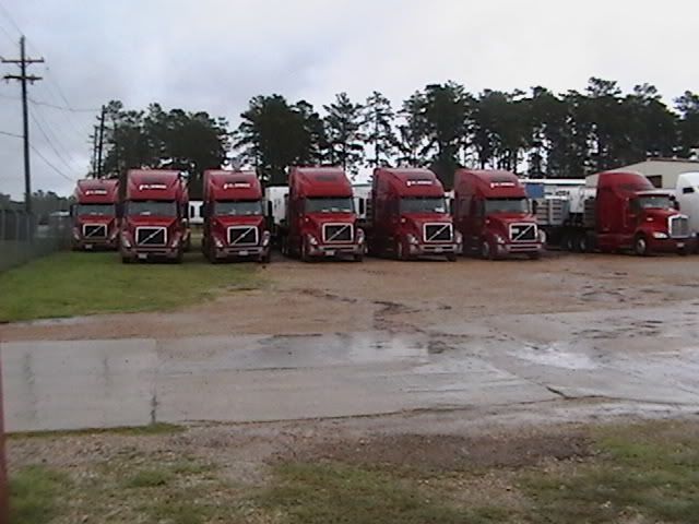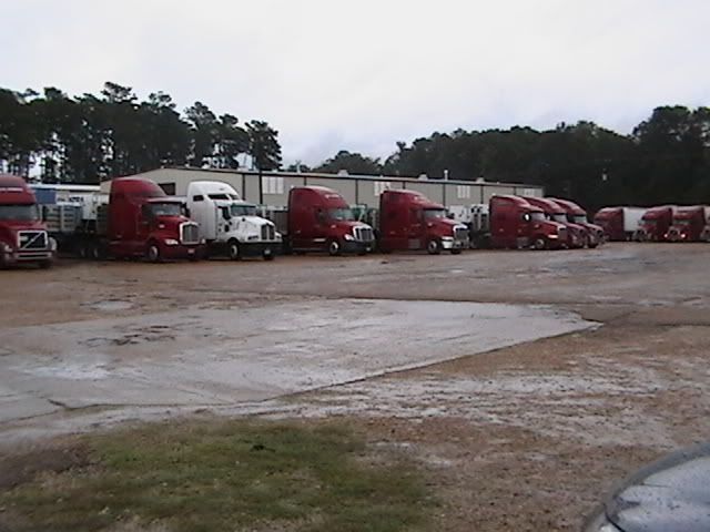 it's 19:30 and DARK...! trucking is a rockin and the wind blowen rain made me take down the dish (no tv now) got a row of bobtails in front, a row of bobtails on the right one side a row of bobtails behind and a line of loaded flatbeds (generators) on the right Take some Dramamine, listen to water fall music, and pretend your on a freighter to Tahiti!