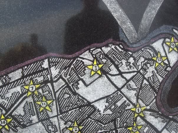 This is a map of Baghdad and the area where these men served and lost their lives. Note the Gold stars, these are all incidents where those on the monuments were lost