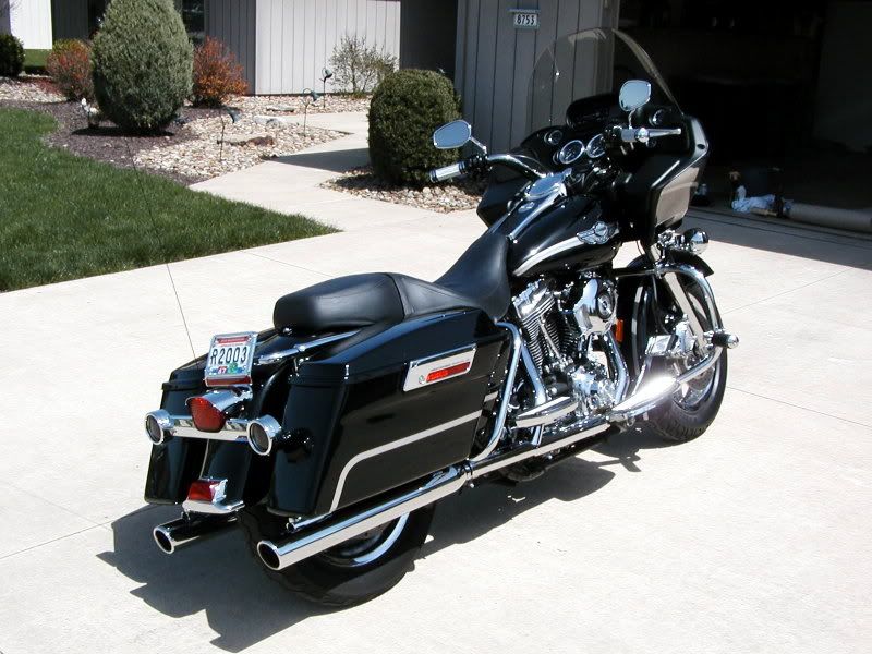 This was my last Harley. 100th anniversary, chromed, rims, rotors, 96 ci motor. Pictures are at my old house. When I moved I sold my bike to build my pole barn. I figured I'd get another one but I doubt it now that I got the camper. I'm a toy ADDICT! Banks love me!