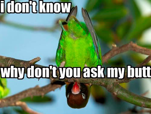 Because now your talking to yourself. Dat a sur sign of smoken da blunt man. Datz sum krazy azz sh$t ur smoken ta make ya hear da mam talkin in yo head. Put the blunt down and read it 3 times before you answer yourself, you might notice. :wink: