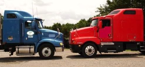 hmm big red truck i guess your a super slacker now. your going to have to slow down to keep from blowing off the door decals slacker That was my tractor nose to nose with his.... Got to see his "new" (to him) tractor....damn I forgot what a big sleeper looked like.... The tractor looked like it was originally a "Red Racer", but there were a couple of items on it that canceled that out... Nice Ride though!!:smokin: |